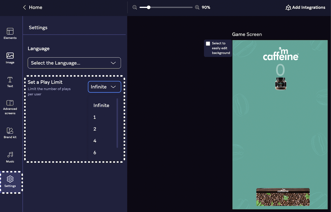 # Set limit of gameplays per user